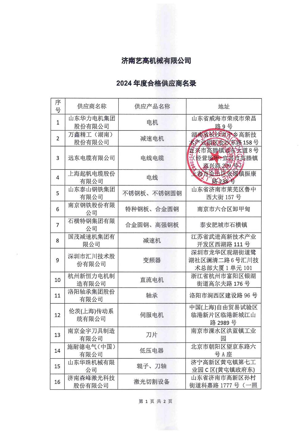 【濟(jì)南藝高數(shù)控機(jī)械有限公司-2024年度合格供應(yīng)商名錄】公示