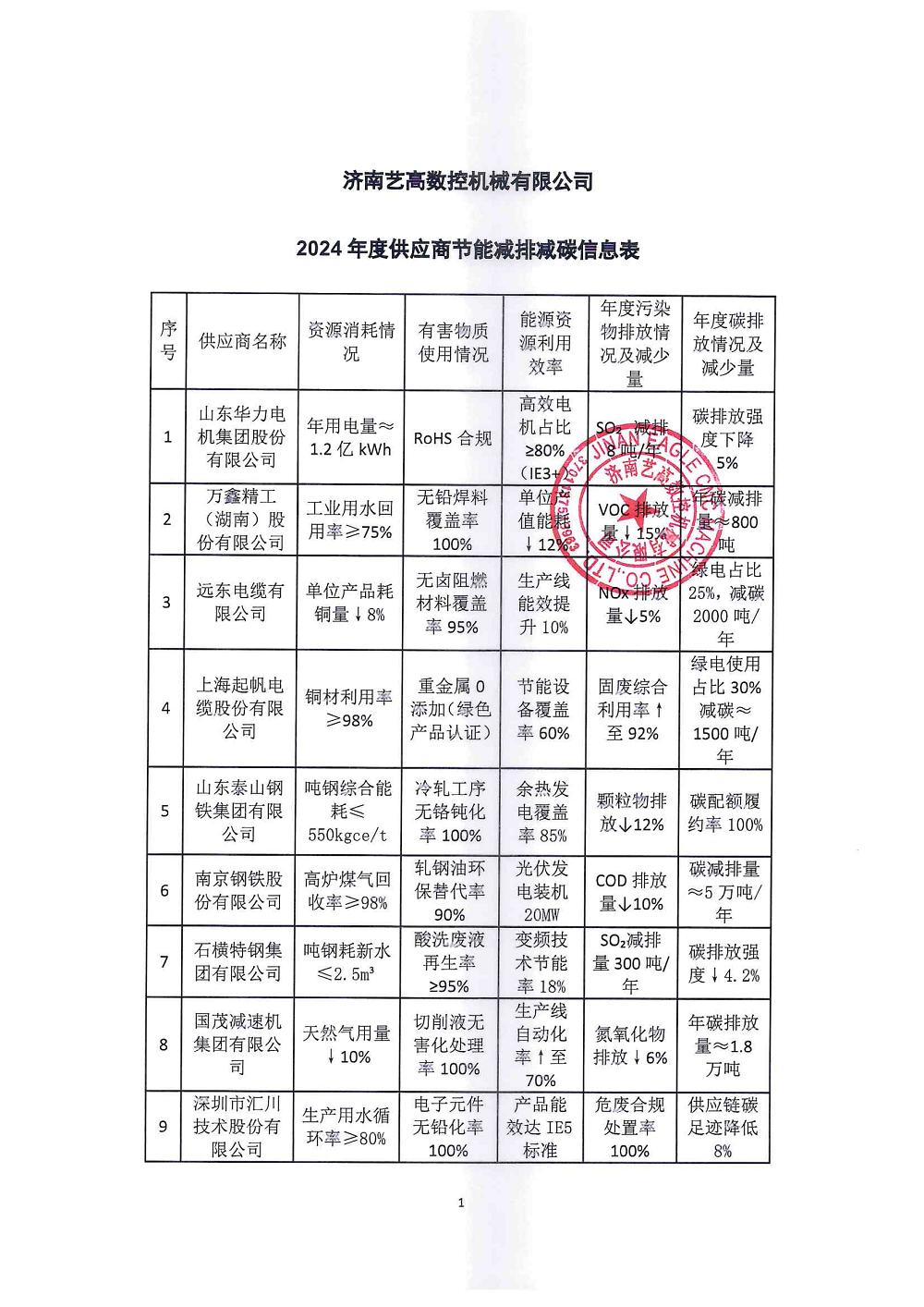 【濟南藝高數(shù)控機械有限公司-2024年度供應商節(jié)能減排減碳信息】公示