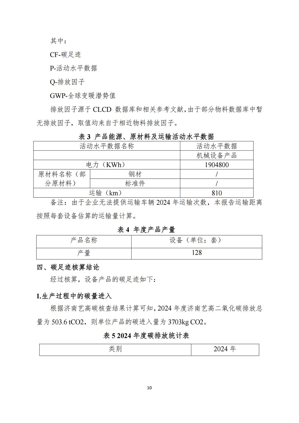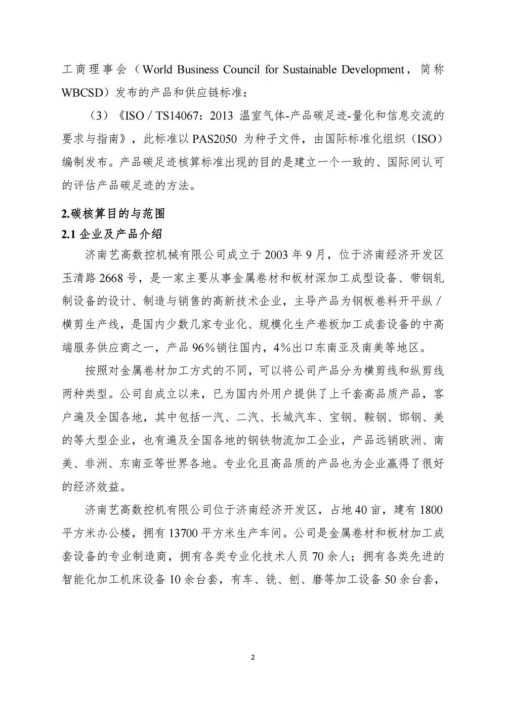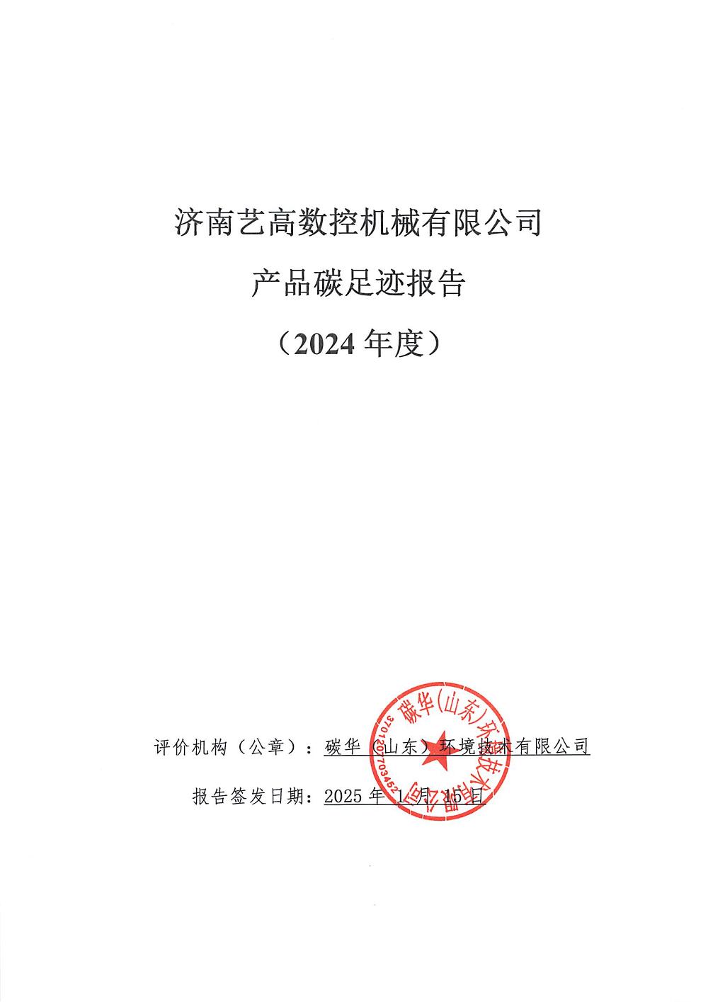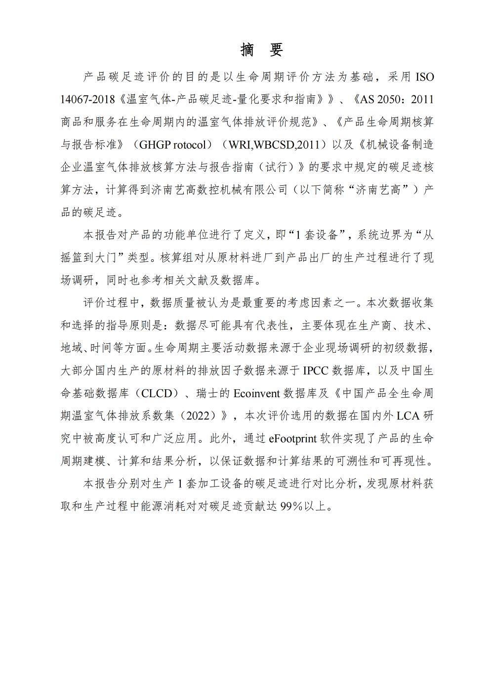 【濟南藝高數(shù)控機械有限公司-碳足跡報告】公示